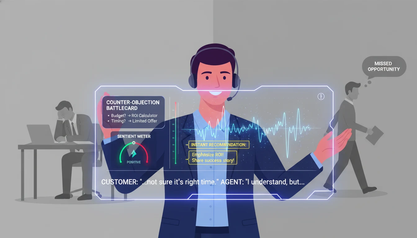 Shift your focus from "Post-Call Analysis" to "In-Call Intervention." While analysing recorded calls is useful for long-term training, it does nothing to save a deal that is currently failing. Use AI to provide silent, screen-based cues to agents during live digital interactions to pivot the conversation before the prospect disengages.